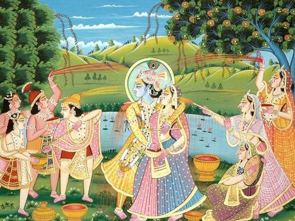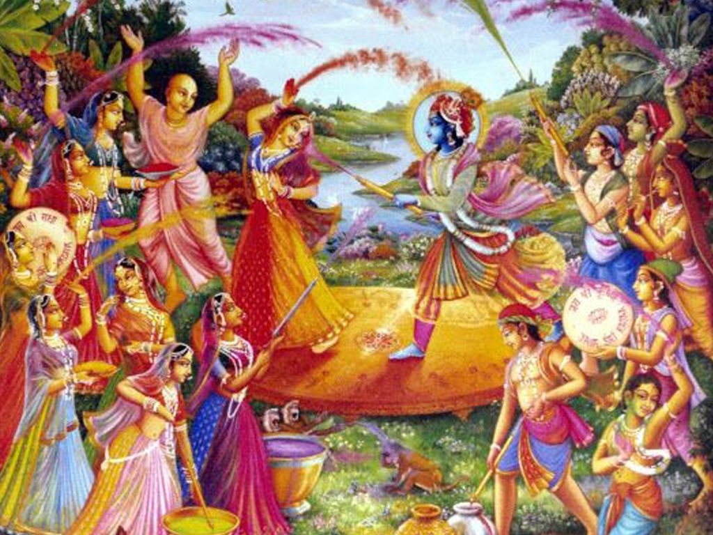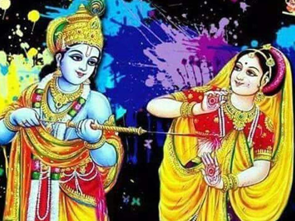Shri Radha Krishna Holi Color HD Wallpaper - 1024x768px